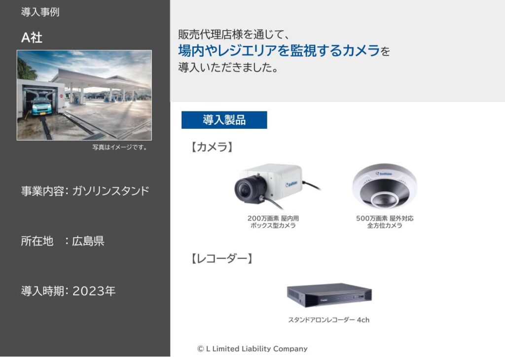 バリフォーカルレンズ搭載のカメラと全方位カメラを使用して注視したいポイントの監視と同時に、全体像の把握を実現! 導入製品 200万画素 屋内用 ボックス型カメラ 500万画素 屋外対応 全方位カメラ スタンドアロンレコーダー 4ch
